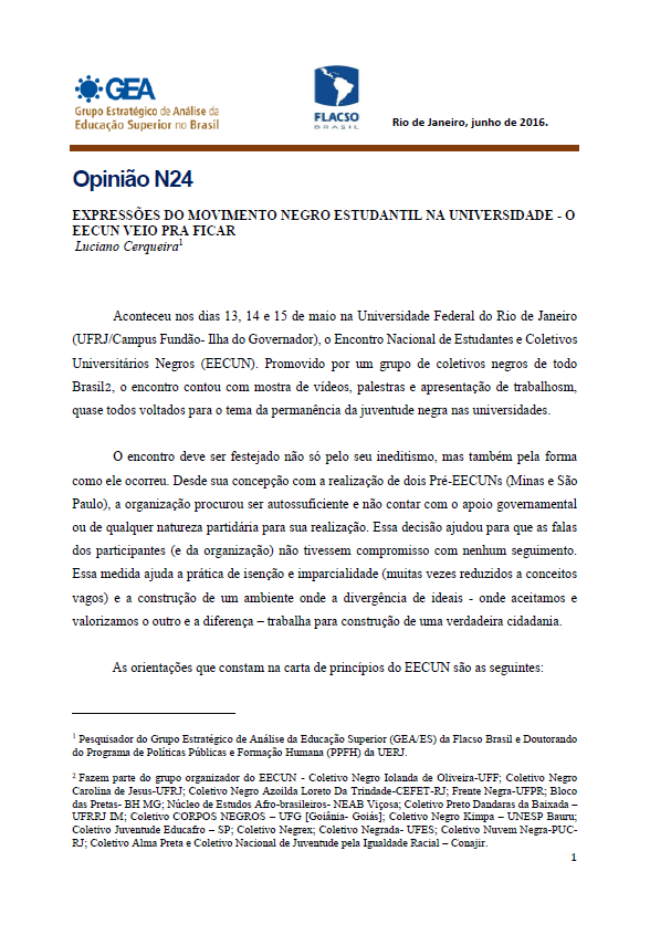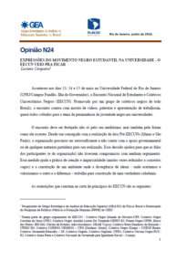 • Opinião N24 – EXPRESSÕES DO MOVIMENTO NEGRO ESTUDANTIL NA UNIVERSIDADE – O EECUN VEIO PRA FICAR